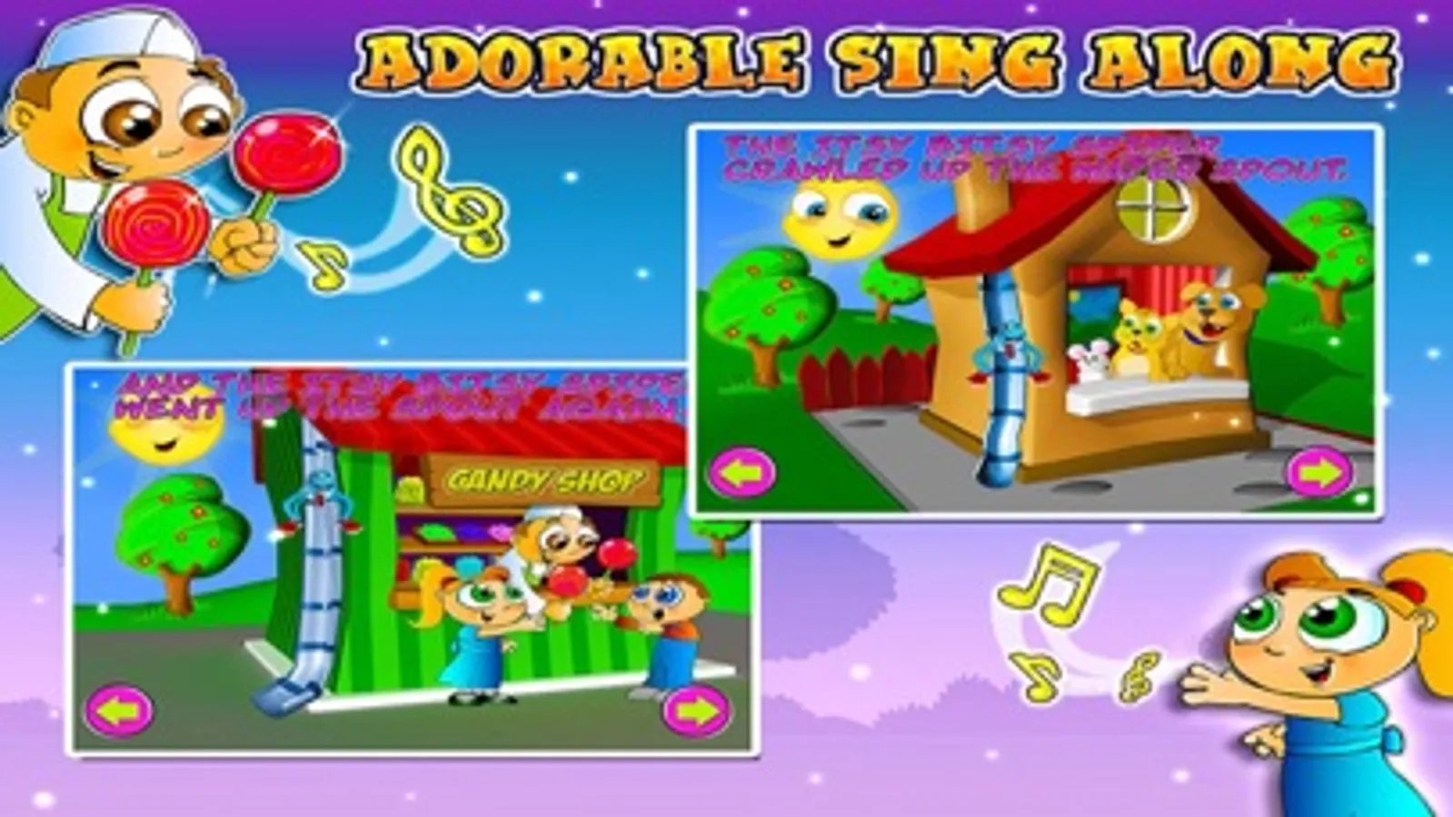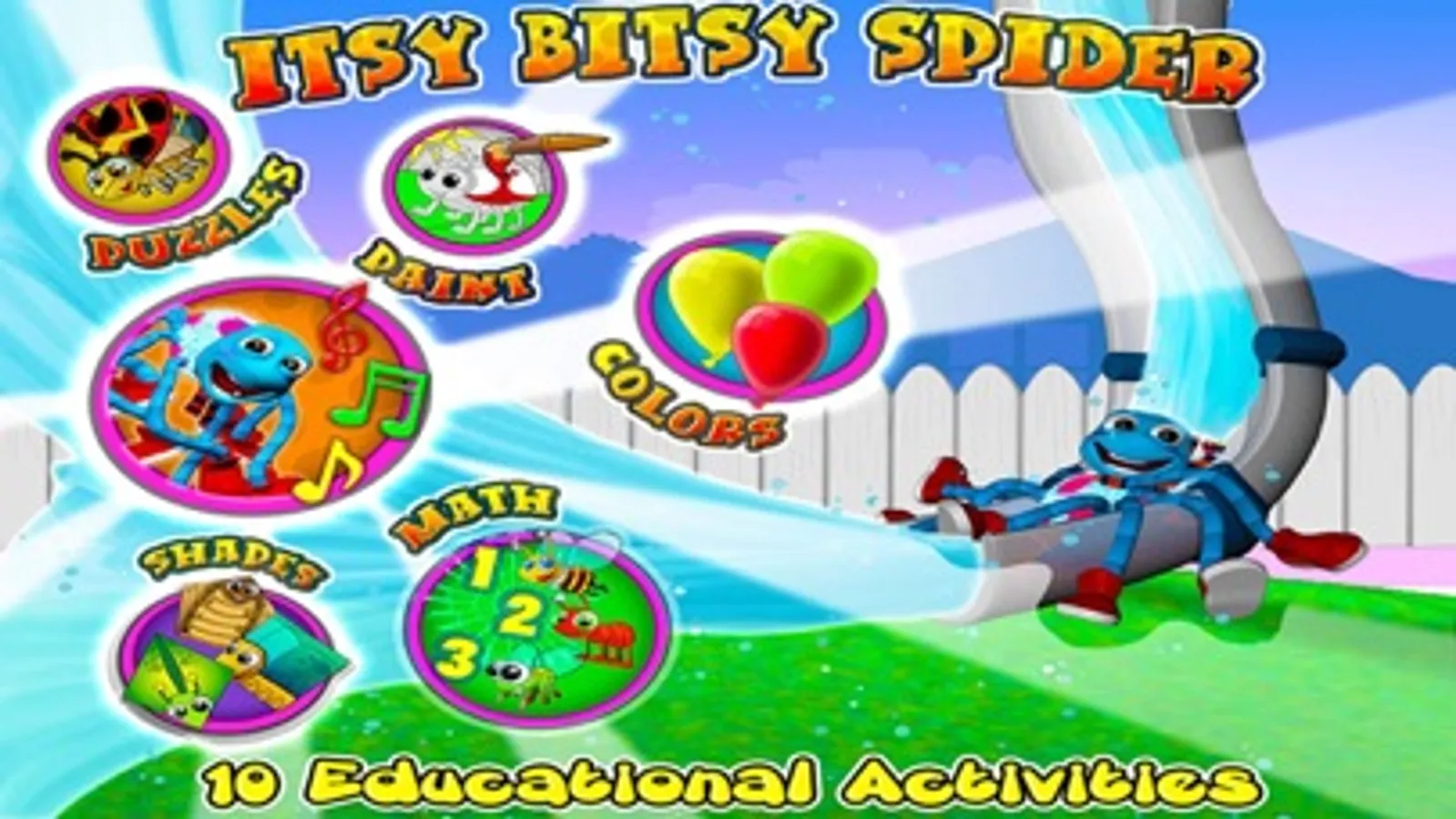 Come and enjoy the classic song, Itsy Bitsy Spider, with the playful Itsy Bitsy Spider and all his little bug friends! The song includes 5 beautiful and colorful verses filled with fun interactions. The engaging, fun filled games inside the app will provide hours of entertainment for your children, while they are developing their memory, logic, fine motor skills and more.