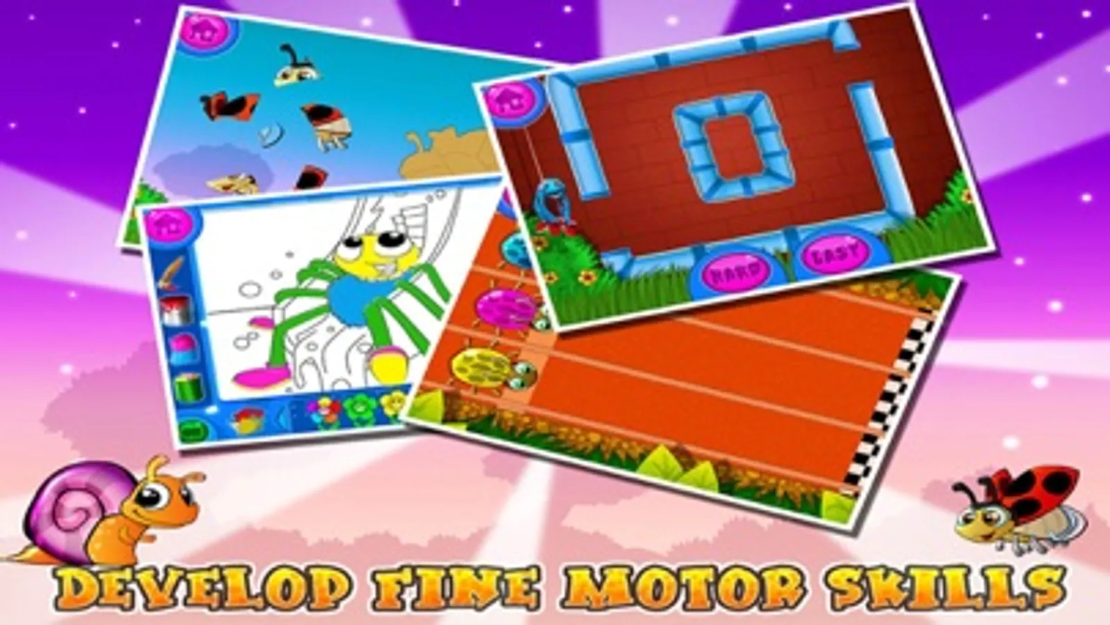 The Bug Race is on, select your bug and race with 10 colorful bugs in a vivid racing track. Tap your bug to make it run faster, the more you tap the faster it will go.