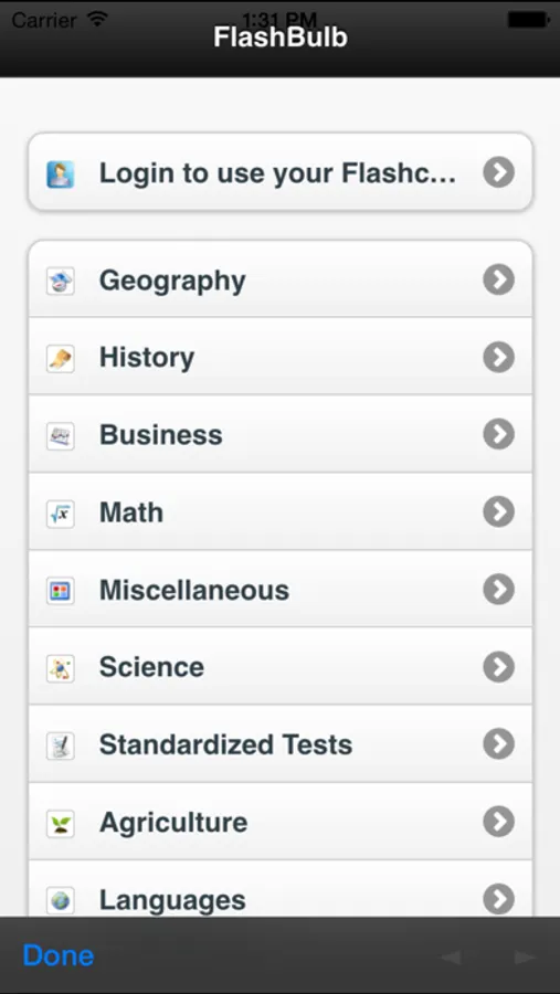 •Flashcards: Study your FlashBulbTM flashcards or access thousands of flashcard sets from the Brainfuse flashcard library.