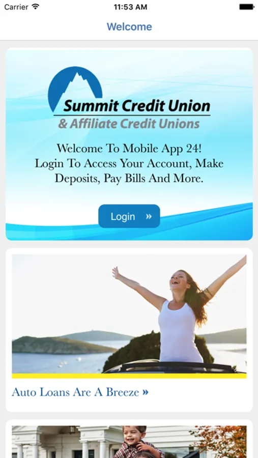 Summit Credit Union's mobile app provides easy and secure access to your Summit Credit Union accounts from your iPhone or iPad. Easily check your balances, view transaction history, deposit checks, pay bills, make transfers, view statements, apply for a loan, or find nearby branch locations or ATMs. Summit Credit Union's mobile app is available to all Summit Credit Union members.