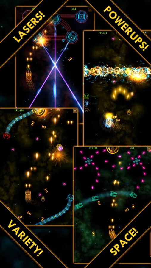 There's lots of kinds of enemy ships, and snakes, and your ship powers up and can get different kinds of ammo. There's a regular shield, but also a spike shield that lets you ram enemies. There are bosses! And there's lasers! And you can get wing-men who can power up too! And you and your wing-men can get lasers! And the levels are all different! And there's other stuff! And it barely costs anything!