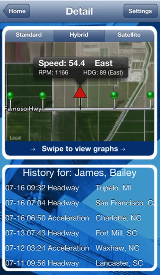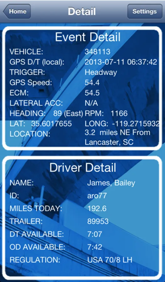 Receive real-time alerts of critical fleet incidents with the PeopleNet EventAlerter™. Designed for users of the PeopleNet Fleet Management system, the PeopleNet EventAlerter sends relevant safety alerts to fleet managers in instances of critical incidents (rollover-stability, sudden deceleration, etc.). A satellite map of the incident is provided along with pre- and post-incident trails, all of the particulars of the incident, the identity of the driver, the driver’s available hours of service (HOS), and the past 24 HOS activity. The last five safety events for the driver are also displayed to help assess the emergence of a negative trend.