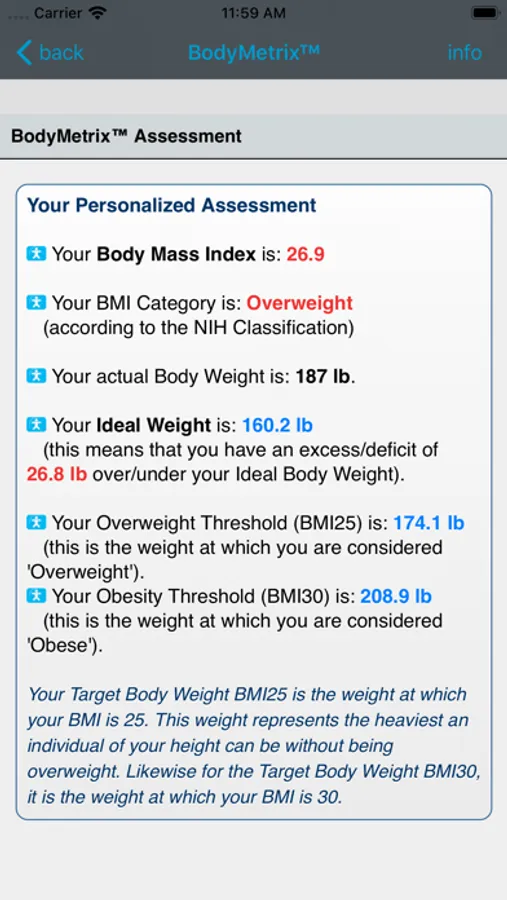 Compute your own Body Weight parameters in one single panel. Assess your BMI, body fat, obesity threshold and much more... with confidentiality, reliability, and absolute privacy.