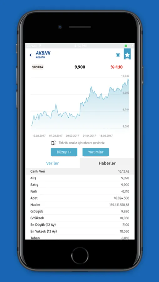 - Canlı Borsa ile IMKB verilerini takip edebilir dilerseniz, Düzey 1+ IMKB derinlik bilgileriyle, bekleyen hacim ve alım satım fiyat basamaklarını inceleyebilirsiniz.