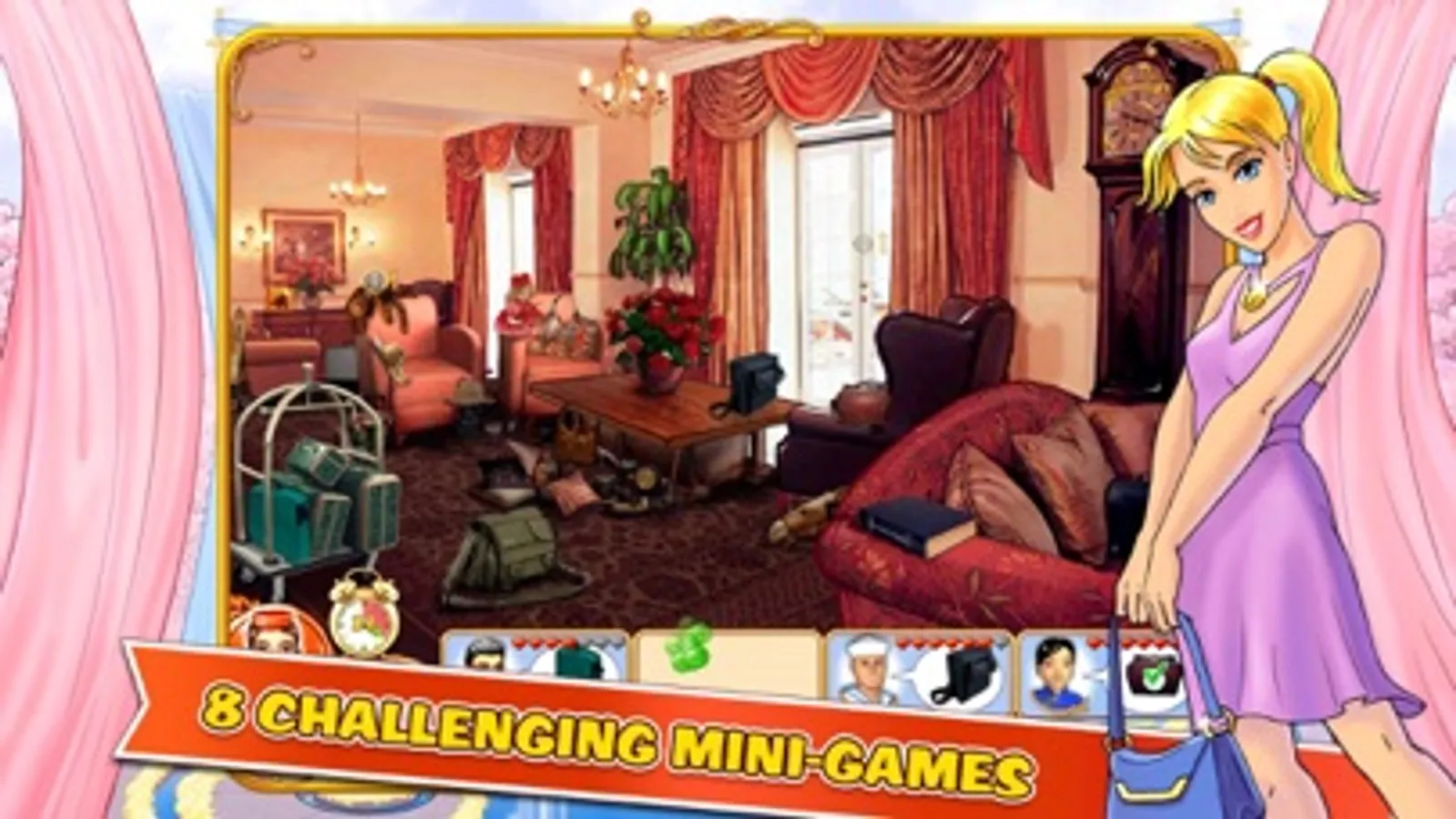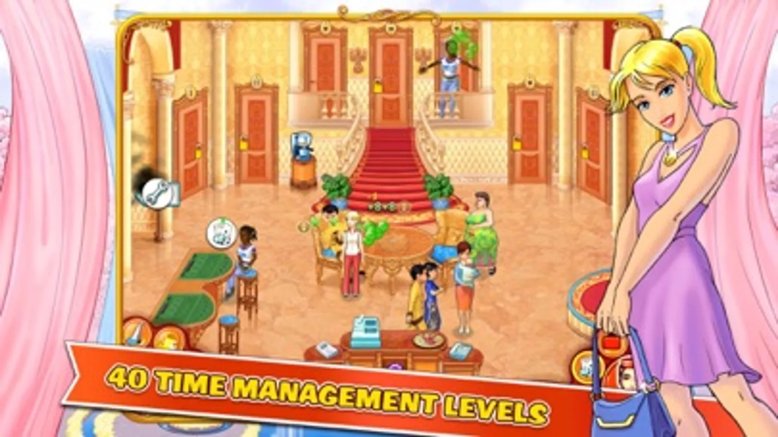 Jane's Hotel Mania has a lot in store for you: interesting story line, lots of new guests, cool mini games, numerous upgrades and much more! Play Jane's Hotel Mania now, explore the latest trends in hotel business together with Jane and Jenny, become a real hotel king!