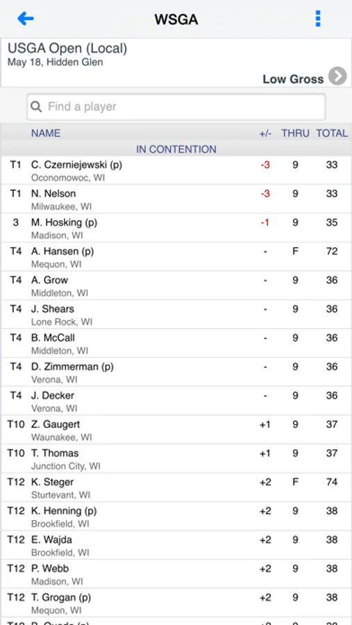 The Wisconsin State Golf Association iPhone app.