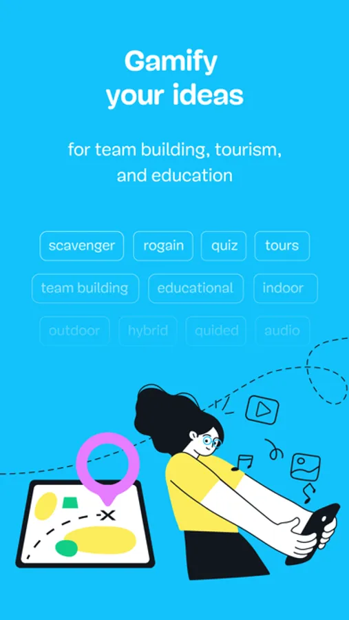You can build with Loquiz gamification platform real-life outdoor and indoor games; city, audio, and self-guided tours for tourism; team building scavenger hunts, and educational games.