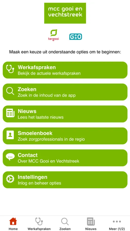 De MCC Gooi en Vechtstreek app bevat alle Werkafspraken, Richtlijnen en Nieuws. Er kunnen werkafspraken gezocht worden op categorie, op alfabet en door middel van zoeken.