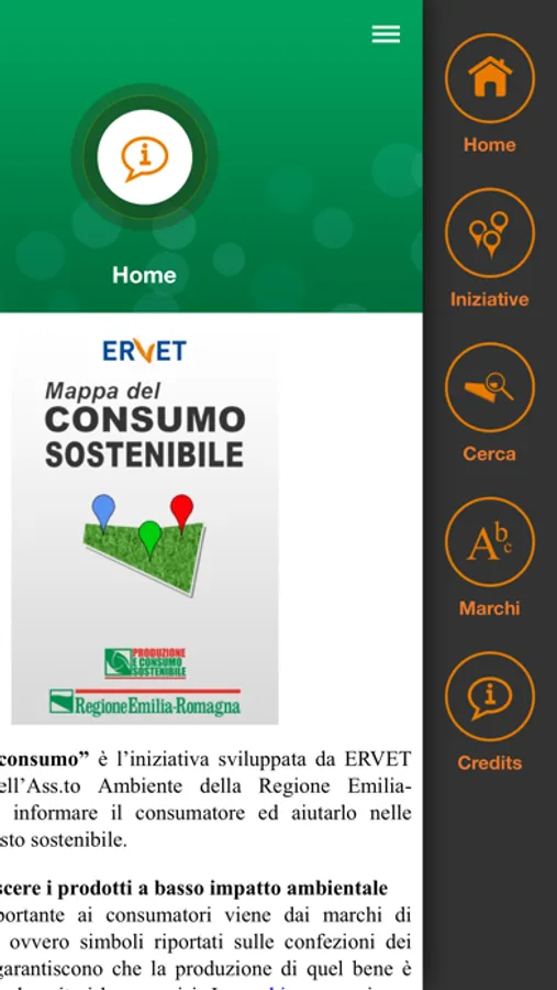 Mappe del consumo sostenibile è l'iniziativa sviluppata da ERVET per conto della Regione Emilia Romagna che ti permette di trovare i luoghi dove comprare prodotti “ecologici” in Emilia-Romagna. Sono mappati più di 3000 punti per 13 iniziative