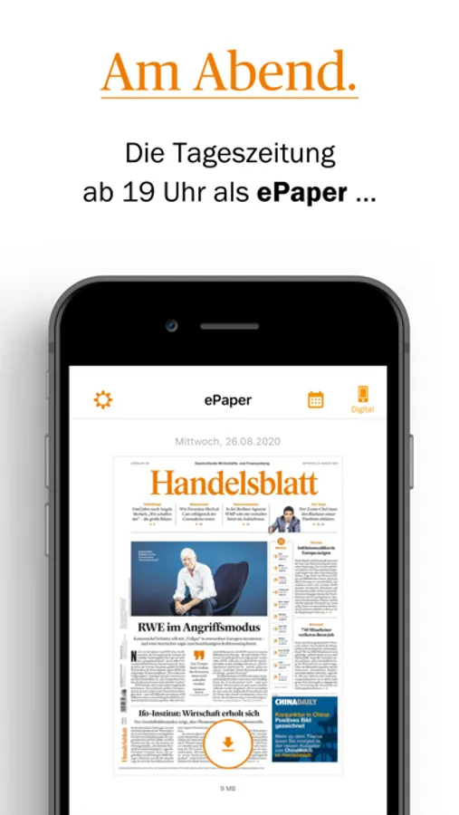 Lesen Sie zusätzlich das komplette Handelsblatt ePaper schon am Vorabend ab 19 Uhr.