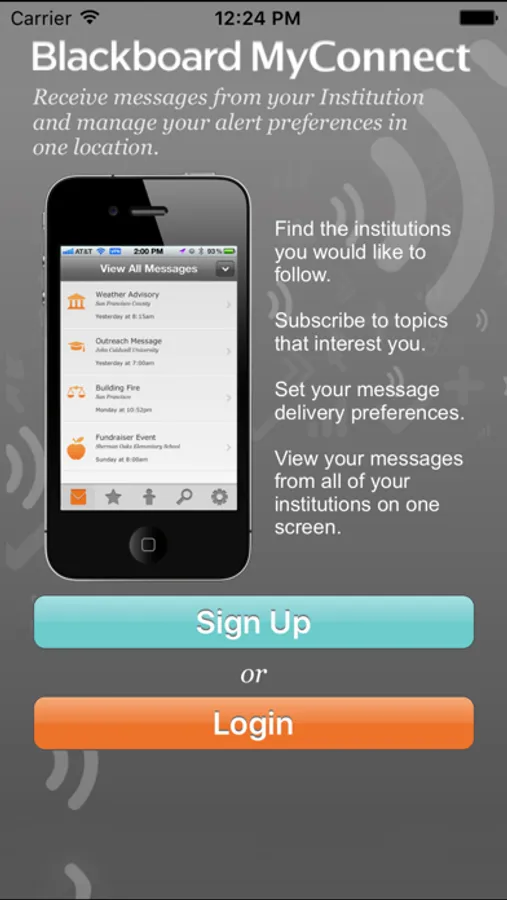 Thanks to mobility, you can stay connected no matter where you go. Now with the Blackboard MyConnect™ smartphone app, you can stay in touch with the institutions that matter to you, too. If you have a relationship with an organization that sends alerts from Blackboard Connect – whether a school, university, local government or a private business, you can use MyConnect to personalize your message experience and stay in touch no matter where you are.