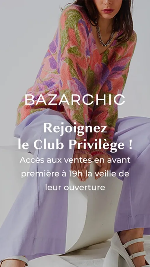 Profitez d’une expérience shopping inédite avec 10€ offerts lors de votre inscription et la possibilité de payer en 3 ou 4 fois avec l’application de ventes privées BazarChic !