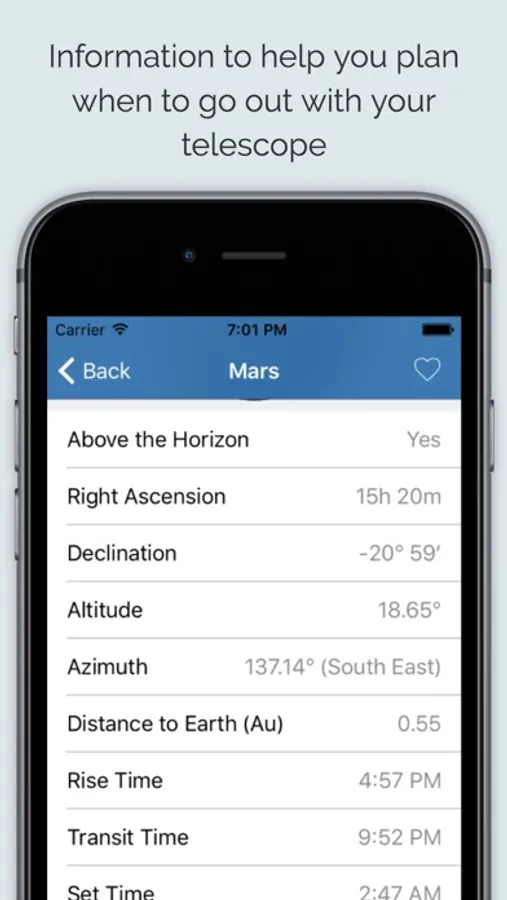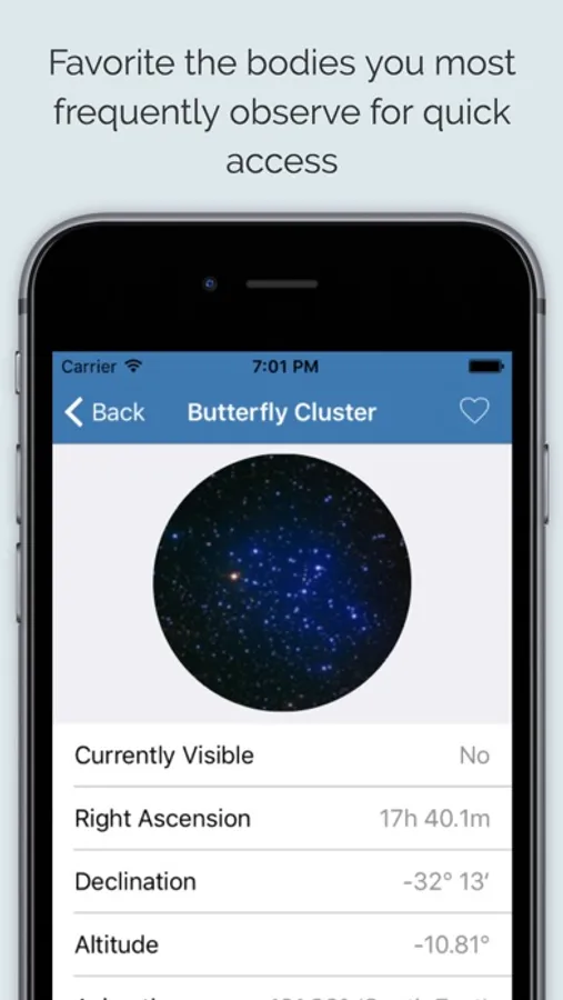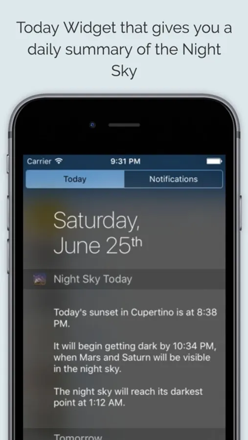 You can add the bodies you most frequently observe to your favorites for easier access, and enable the Today Widget that shows you a daily summary of the Night Sky.