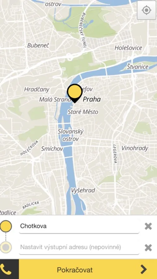 - Po spuštění vyhledá a zobrazí Vaší polohu a nejbližší místo, kam můžeme přijet.
