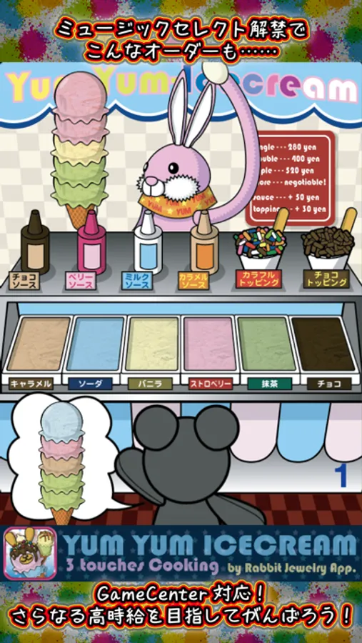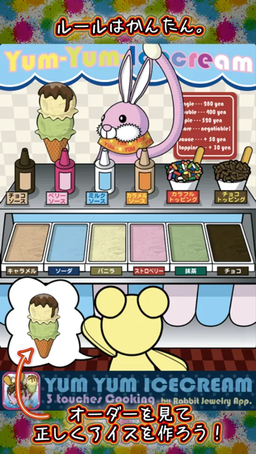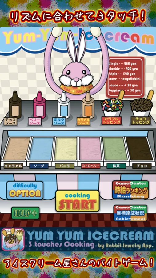 音楽に合わせてアイスクリームを作っていくリズムゲームです。