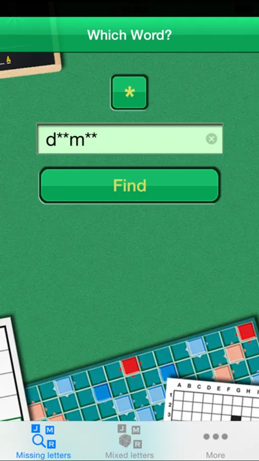Advantage 1 - The search function of words with missing letters for words of 7 letters or more.