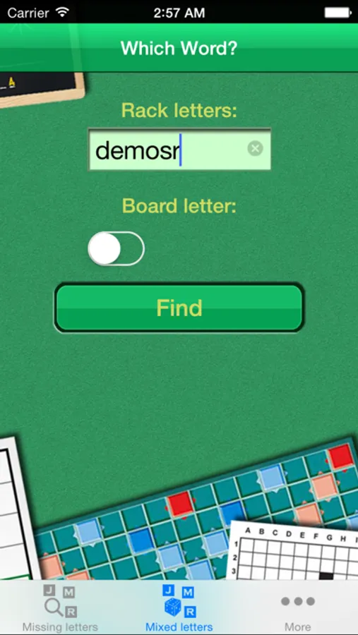 Advantage 2 - The search function of words formed from a given stack, without restriction.