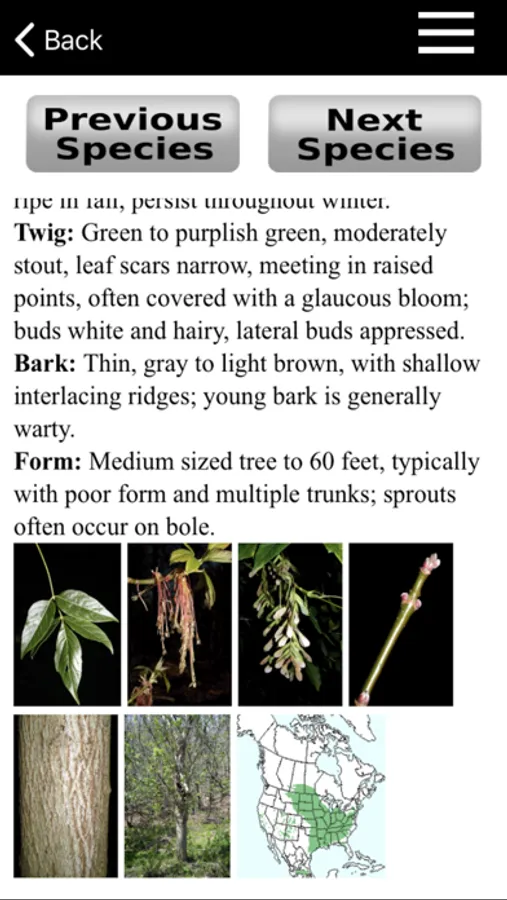 Users can narrow the species list for any location in North America using the phone's GPS or any entered address or zip code. Basically the application can become "The Woody Plants of Where You Are Standing." For example, it can become "The Woody Plants of Southwestern Oregon," "The Woody Plants of Central Park," or "The Woody Plants of 37.108 lat., -80.452 long., elevation 2118."