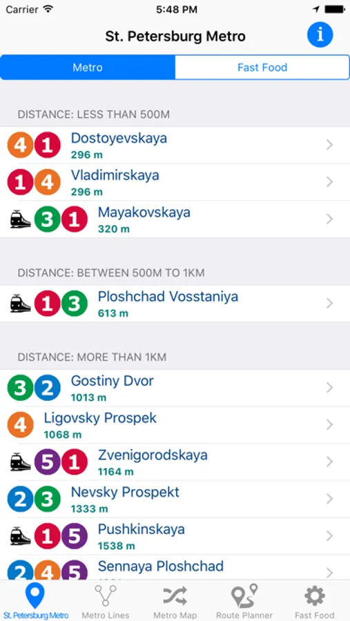 This app is for people who visit St. Petersburg and want to use subway railway for travel. With this program You can easily find stations. The app calculates the distances of each station from Your current position and shows them in a list and on map.