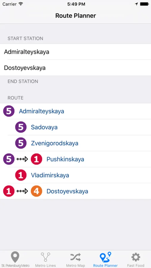 Diese App ist für Leute, wer St. Petersburger besuchen und wollen U-Bahn für Reisen verwenden. Mit diesem Programm können Sie leicht finden die Stationen. Die App berechnet die Entfernungen der einzelnen Stationen von Ihrer aktuellen Position und zeigt diese in einer Liste und auf der Karte.