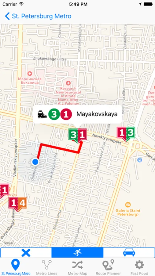 Ez az alkalmazás azok számára készült, akik Szentpétervárra látogtva a Metrót használják közlekedésre. A program segítségével könnyen megtudják találni az állomásokat.