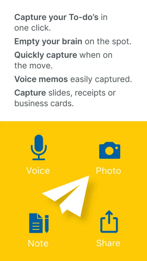Whenever you have a thought that you don't want to lose - speak, snap or scribble it into the Braintoss app and it will be sent to your inbox for later use.