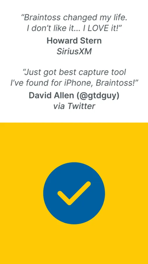 "Just got best capture tool I've found for iPhone: braintoss.com. Smartly simple design by 10yr GTDer." - Awesome praise from GTD guru David Allen via Twitter.