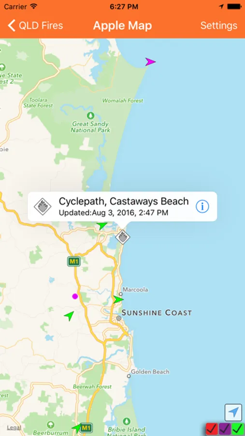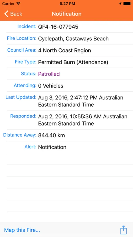 The QLD Fires application is designed to provide information on current fires within the state of Queensland Australia. The information is displayed in a list or map view to enable the user to understand how far the fire is from a user.