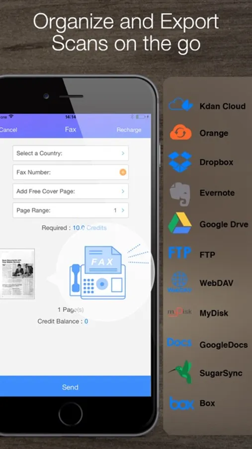 ・Send faxes to 40 countries around the world.