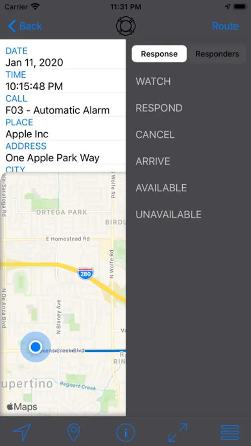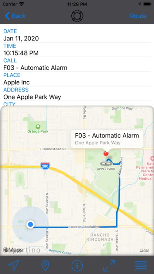 - Get directions from your current location to the scene, in real time