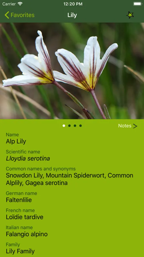 FIELD DATA - AlpineFlower Finder allows the user to create their very own list of favorites, adding notes and pictures. The list can also be complemented by adding photos of flowers taken directly during the mountain walks.