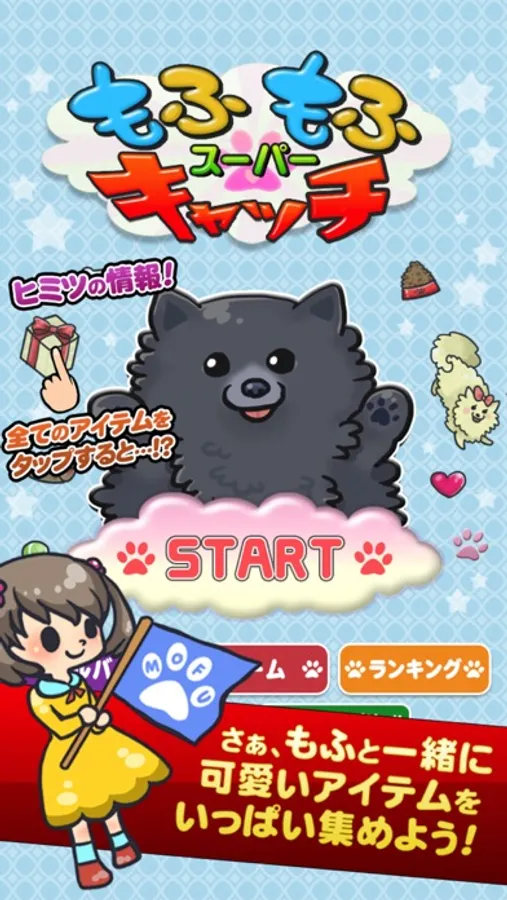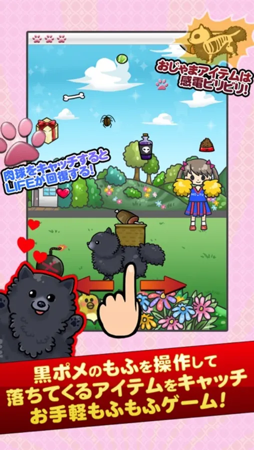 Operate the cute black Pomeranian "Mofu" to catch items!