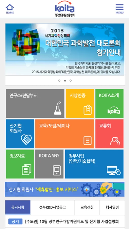 - 회원사 소식, 회원 제공 서비스, 회원사 검색, 최신 정부 R&D지원 사업정보, 기술.재품 홍보 및 제휴할인, 회원사 가입안내