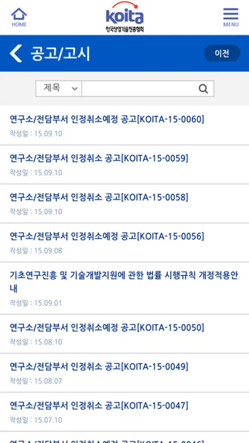 - 정기간행물, 비정기간행물, (월간) 기술과경영, 산기협 뉴스레터(KOITA in)