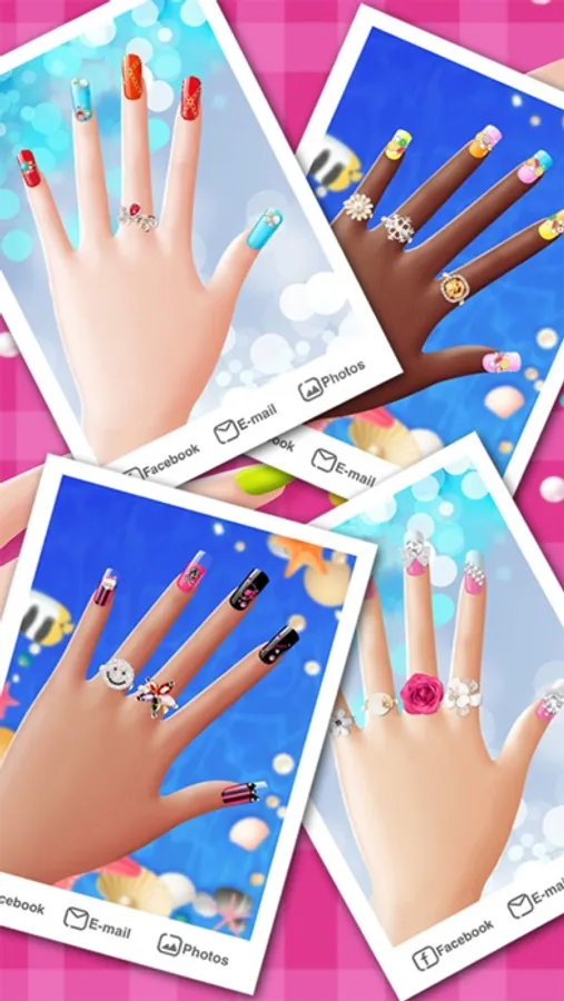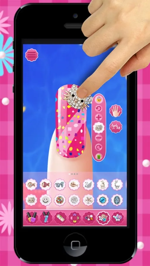 Create your very own manicure designs in Nail Salon. You could paint on different skin color,choose from loads of polish color collections to custom paint gorgeous nails, choose from absolutely tons of sparkling rhinestones, crystals, diamonds, gemstones, pearls, stickers, patterns, fimo, resin and much much more to decorate your nails, and you are welcome to choose the customized nails from Salon as well.