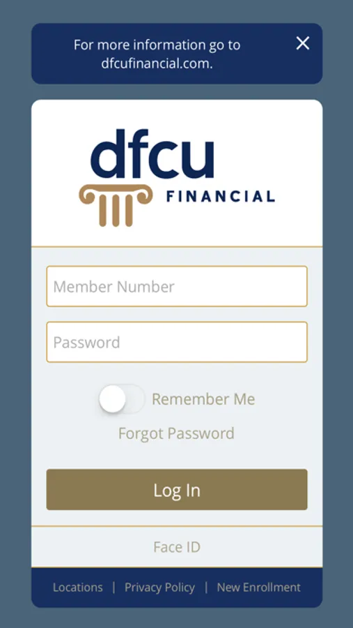 You must be enrolled in DFCU Online to use this app. To enroll, launch the app and choose “New Enrollment” (located below the Log In button).