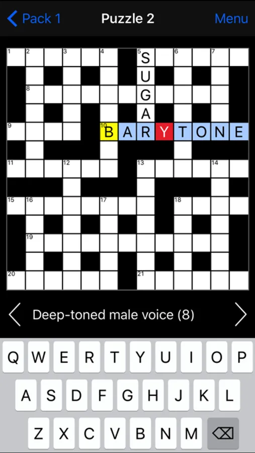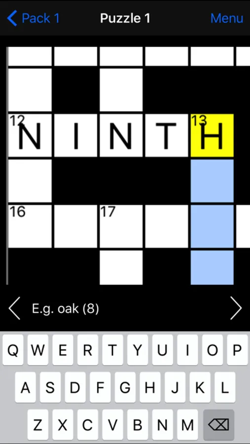 - landscape mode with clue list