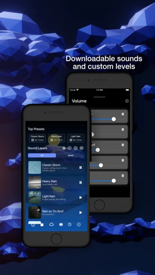 Adjustable settings to add different sounds to your storm like thunder or other sound layers. Heaps of extras that you can add, including the ability to download featured sounds on demand! Also perfect for dock or next you your bed. You can control the sound levels so you can play it along with other music. We regularly update and add new sounds each week that you can download.