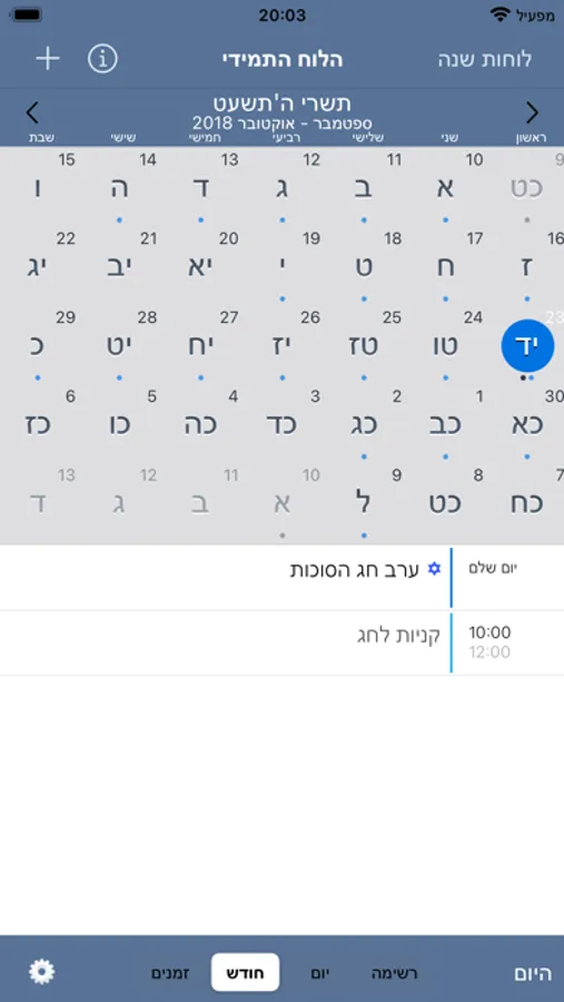 הערה: אם הנכם רואים בלוח ״חגים״ שאינם יהודיים, חגים אלו מגיעים מהלוח המובנה של האייפון- ויש לבטל אותם בבחירת לוחות השנה המוצגים.