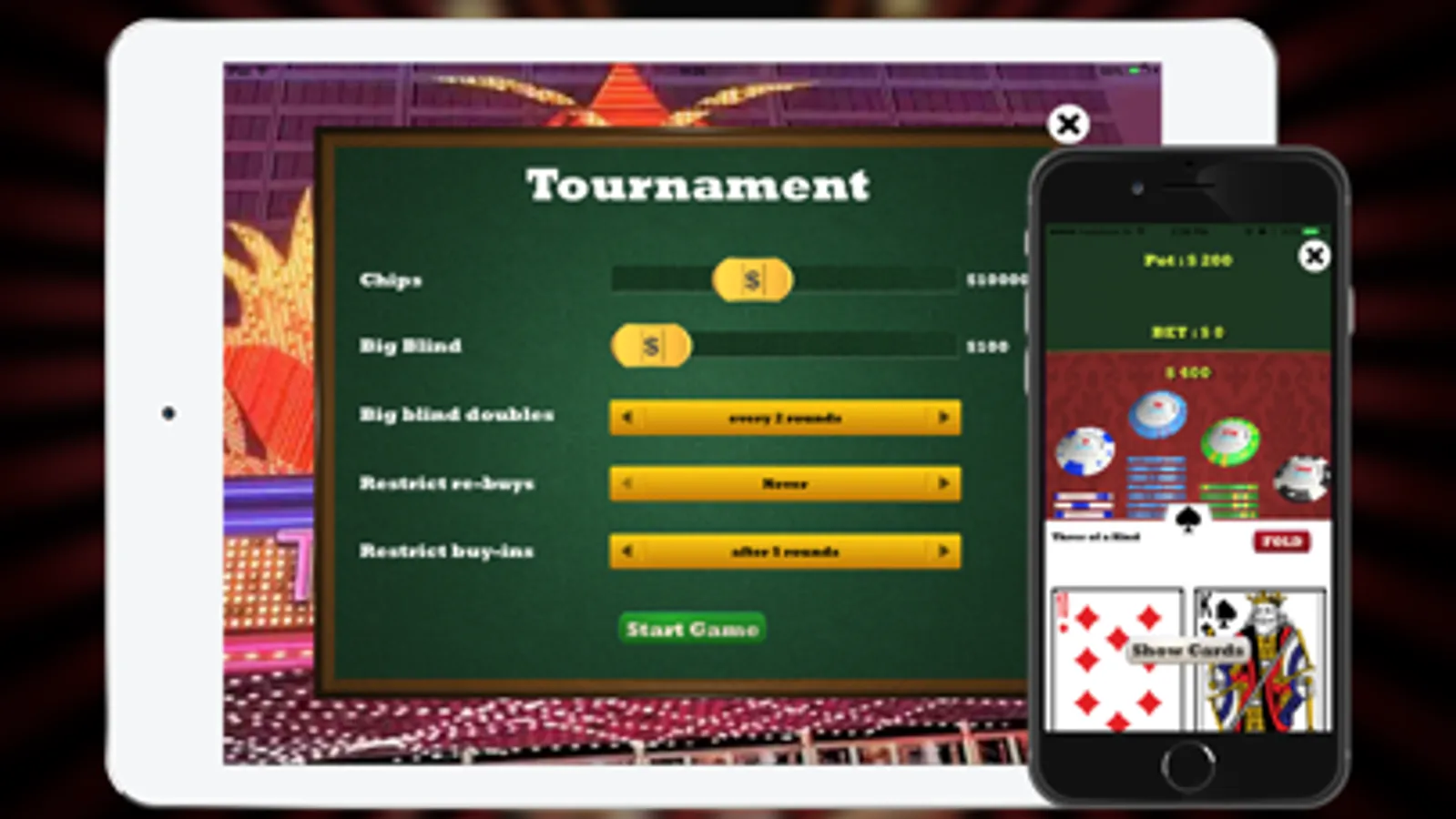 2. Use one device, preferably an iPad, as Poker table: Select "Cash Game" or "Tournament Game" from the menu and select "Start Game"