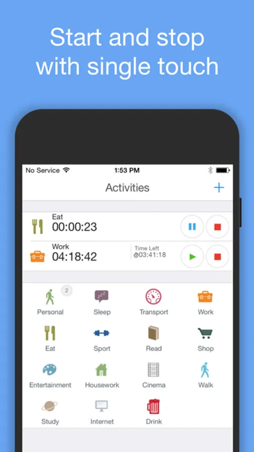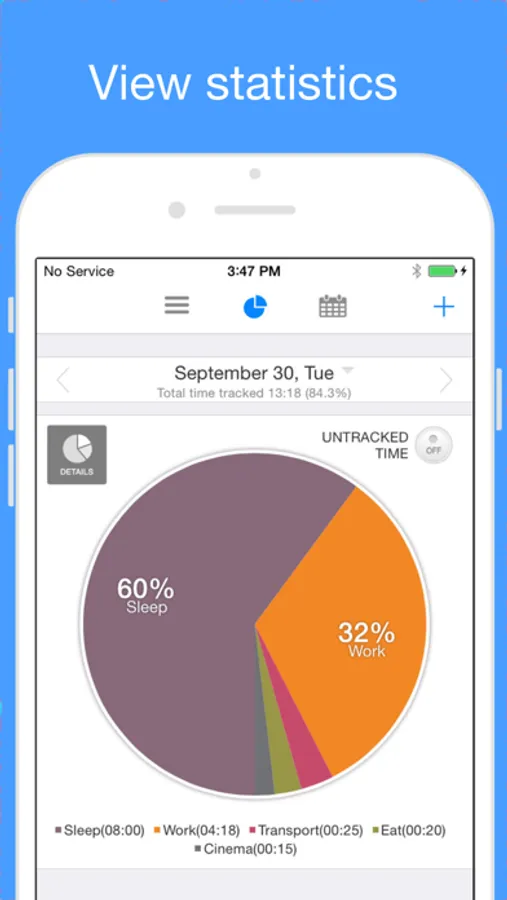 Spending only a few minutes a day on this app you will get daily, weekly and monthly statistics in the form of diagrams and graphs. Using this data you'll be able to control and manage your time.