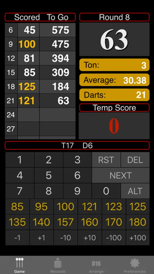 ・ゲームは301,501,701、ラウンド数は10から30ラウンドの範囲で選択可能です。