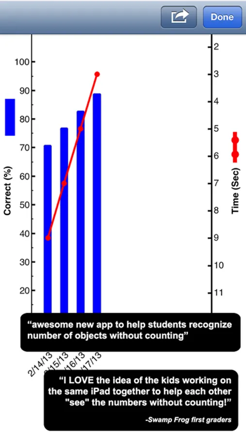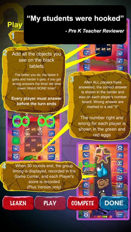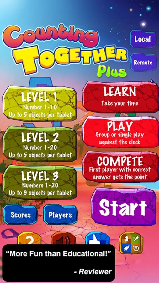 “Counting Together” fills the need for a fun method of reinforcement for today's tech-savvy school child. As the child plays the game, the app itself reinforces the correct answer both visually with a number and with sound effects.
