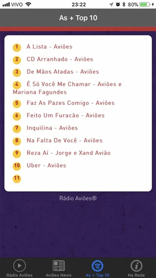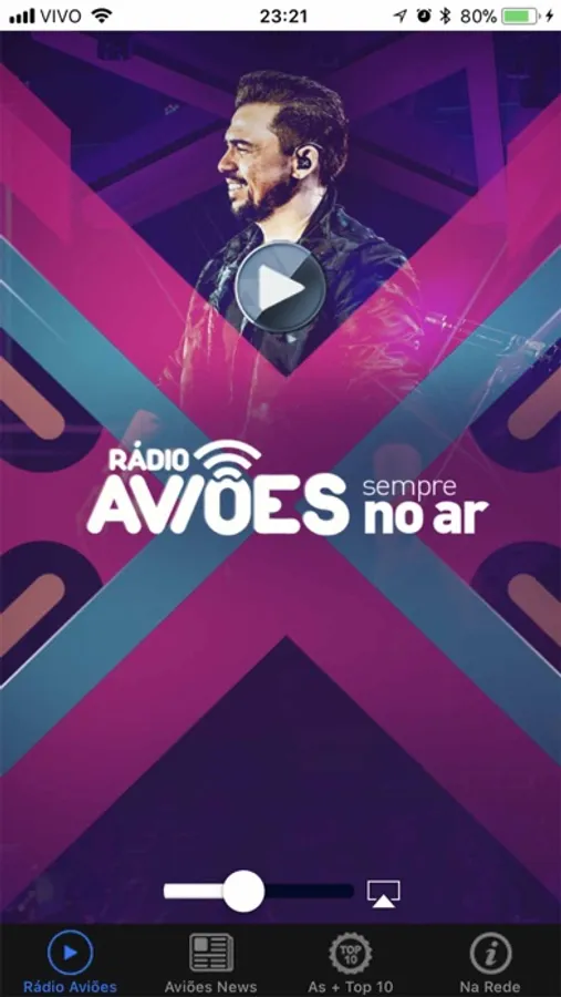 Aplicativo da Rádio Aviões do Forró. Escute a rádio da banda que mais contagia o Brasil e não deixe de conferir as notícias da Banda, as músicas top 10 que são tocadas na rádio e as informações da Banda Aviões do Forró nas mídias sociais.