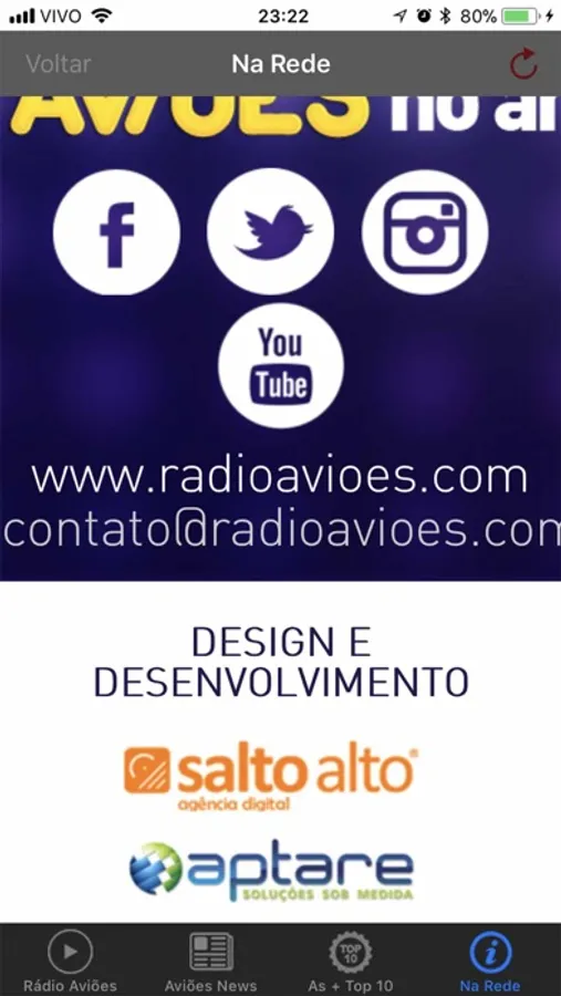 - Ouça a Rádio Aviões através de uma conexão Wi-Fi ou 3G.