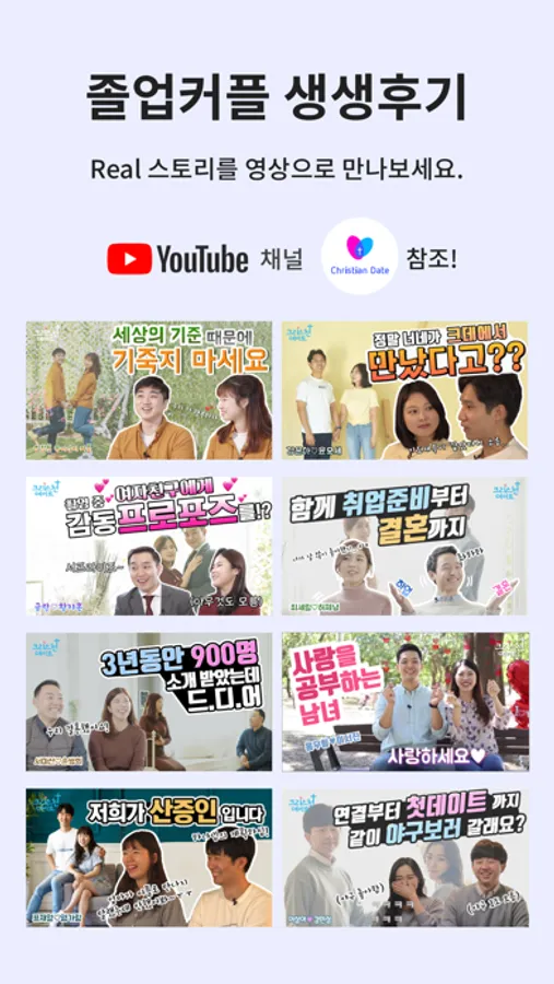 배우자를 위해 기도로 준비해온 청년들이 크리스천데이트를 통해 좋은 배우자를 만나고, 행복한 크리스천 가정을 이루는 열매로 맺어지길 축복합니다."