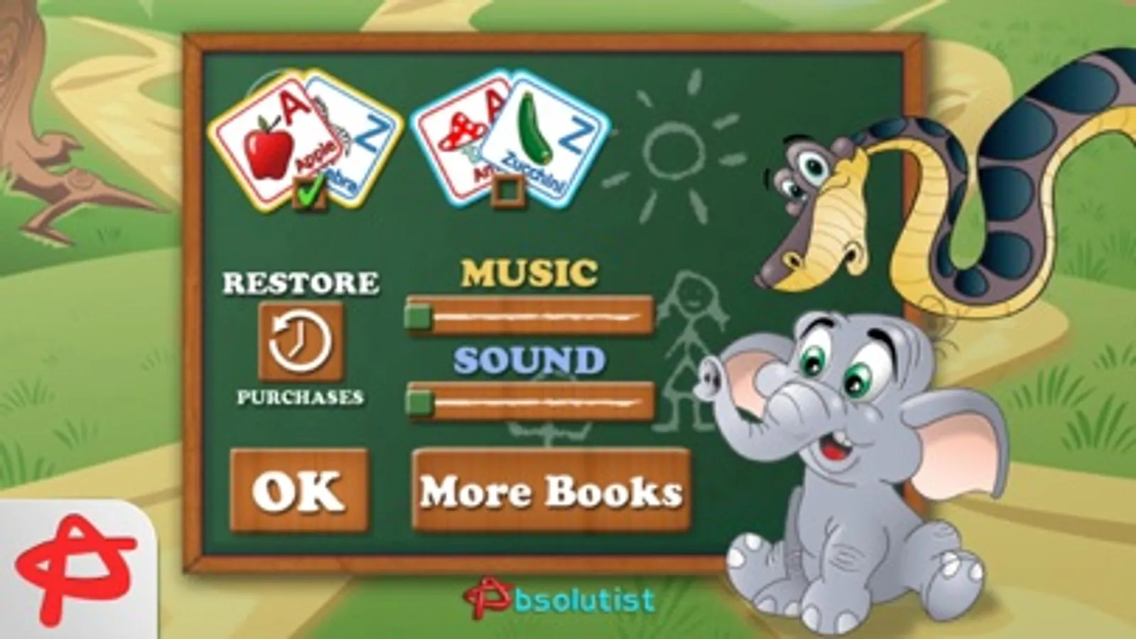 Fun animations and characters make learning exciting for all ages and genders. If you tap on the Little Elephant, you get a hint. If you tap on the Python, you can hear the pronunciation of a letter. After finishing the every 4th stage you will get a sticker as a present. You can gather a collection of stickers and assemble an animated picture in the patchwork style game. Easy-to-use navigation makes exploring fun and simple. Try this game and develop your reading and typing skills.