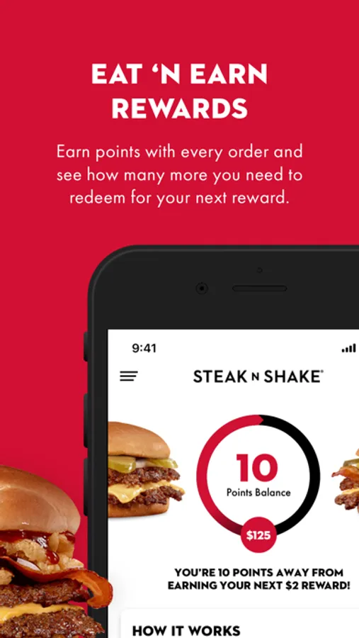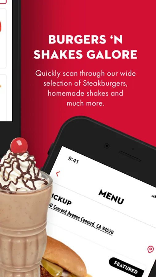 Conveniently order ahead for your favorite hand-crafted Steakburgers, Homemade Milkshakes and more. Build your perfect burgers and shakes with the toppings you want. Choose takeout, delivery, curbside pickup or our new car hop option. Use our car hop service by choosing a spot to park in when you arrive. Then, from the comfort of your car, let us know your spot number. We'll bring your order right to your car. Our new Curbside experience lets us know when you arrive so that we can bring your order out to you—hot and fresh. Every order earns points that you can redeem for delicious rewards. Get surprise bonus offers and rewards personalized to your tastes.