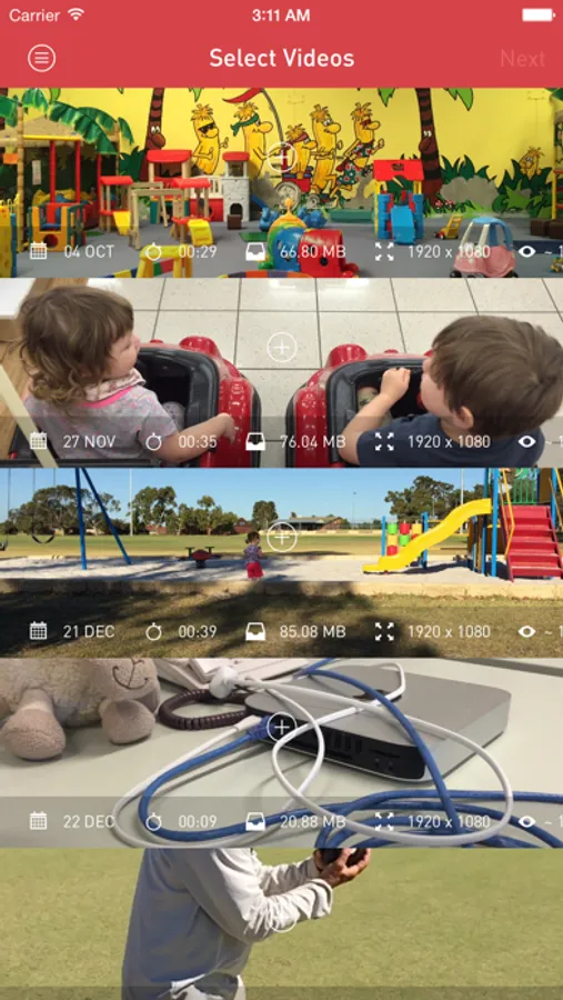 1. Select one or more videos from your library's camera roll (or other album) to add to the video queue.