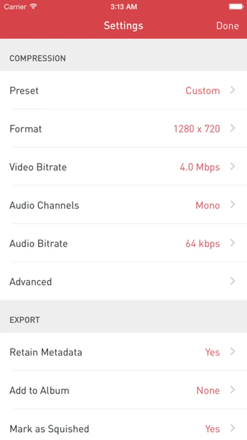 Note 2: Video Squishy only works with videos natively supported by Apple devices (such as those recorded on the device itself). It will not handle files such as .avi, .mkv files or any with DRM protection (e.g. iTunes purchases).